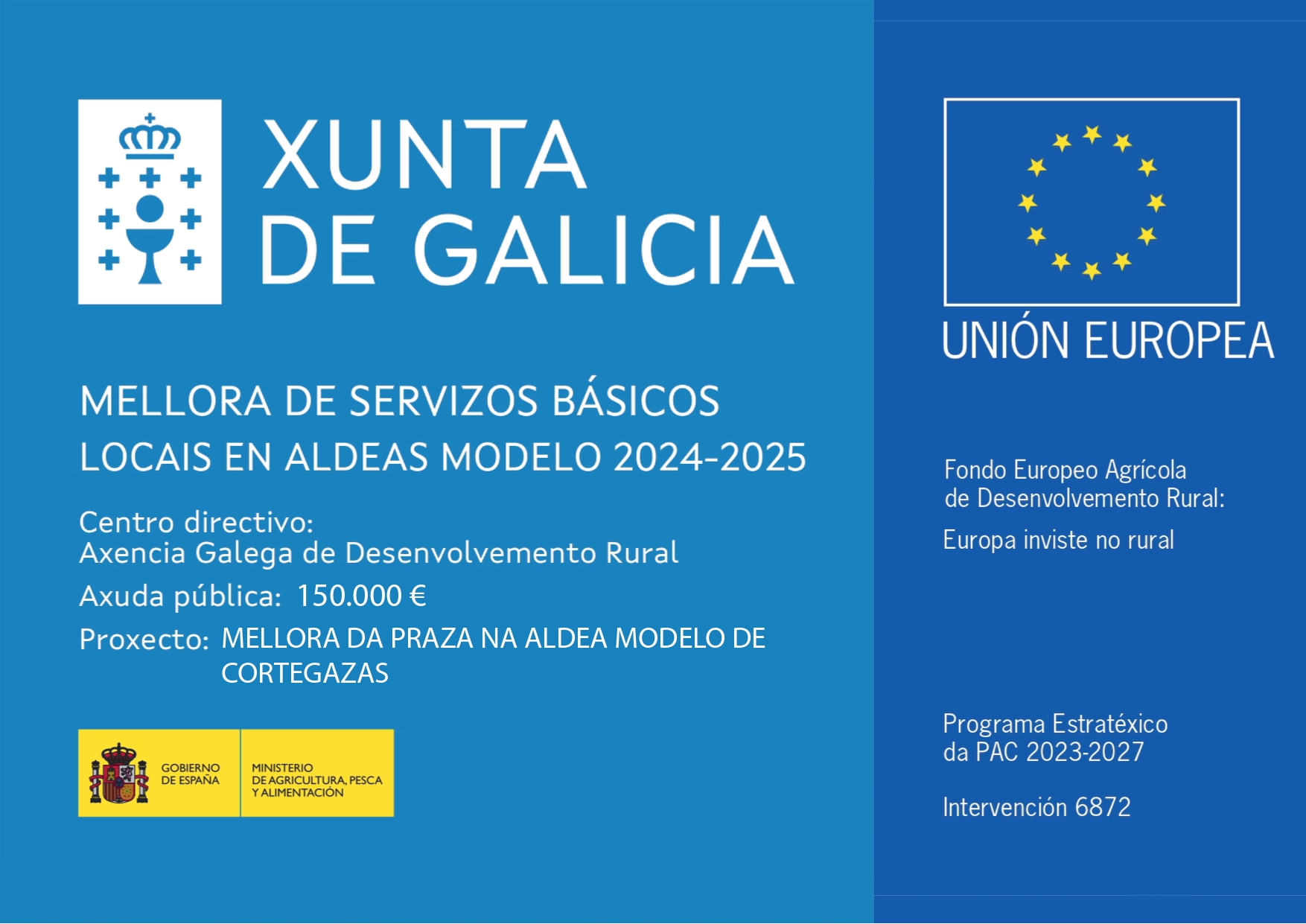 Continúan las labores en la Aldea Modelo de Cortegazas. En esta ocasión, acaba de ser beneficiaria de una subvención de 150.000€ para la mejora de la plaza del pueblo. La subvención es financiada por la Xunta de Galicia y por el Fondo Europeo Agrícola de Desarrollo Rural: Europa invierte en el rural.