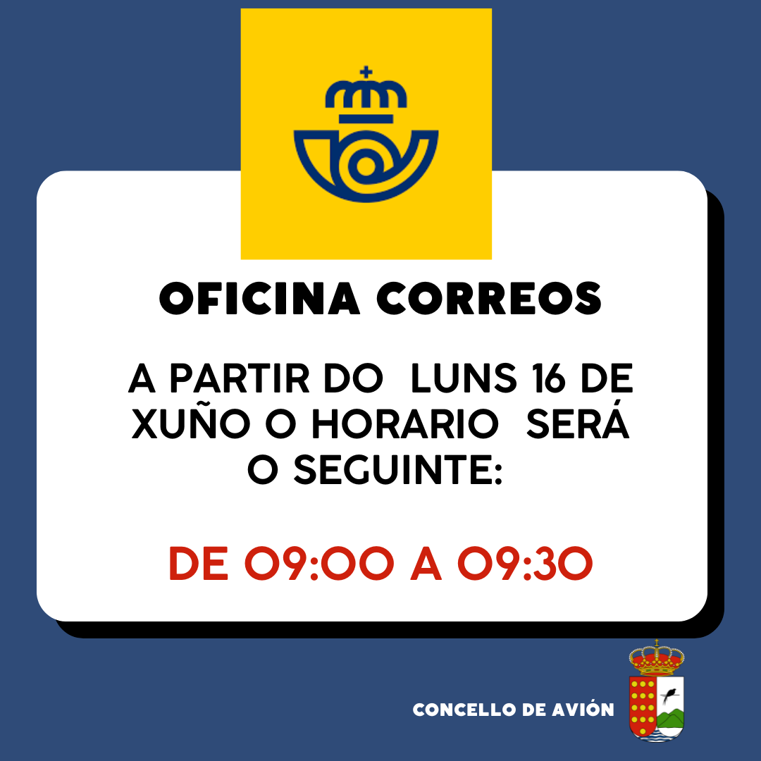 HORARIO DA OFICINA DE CORREOS A PARTIR DO 16 XUÑO